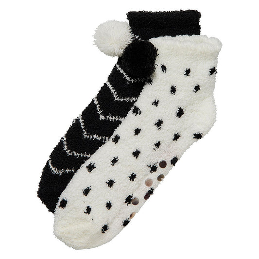 Lage dames bedsokken - Heerlijk Zacht - Zwart/Wit - One Size
