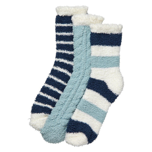 Bedsokken dames - Heerlijk zacht - 3-Pak - Blauw/Grijs