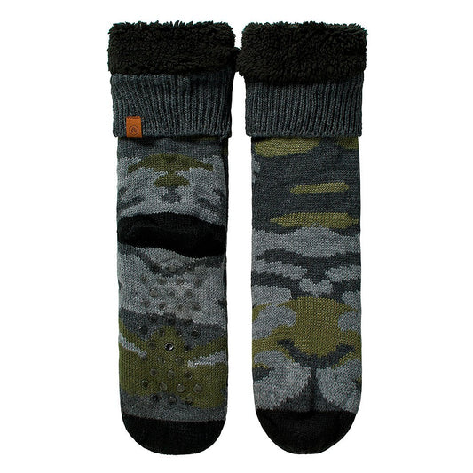 Huissokken heren - Legerprint - Anti slip - Zwart/Groen