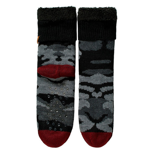 Huissokken heren - Legerprint - Anti Slip - Rood/Grijs