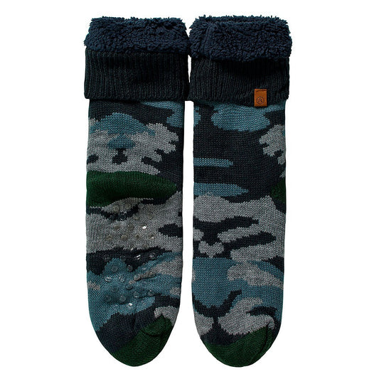 Huissokken heren - Legerprint - Anti Slip - Groen/Blauw