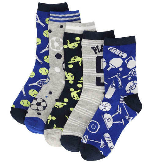 Kleurrijke Kindersokken jongens Sport Blauw/Grijs 5-Pak