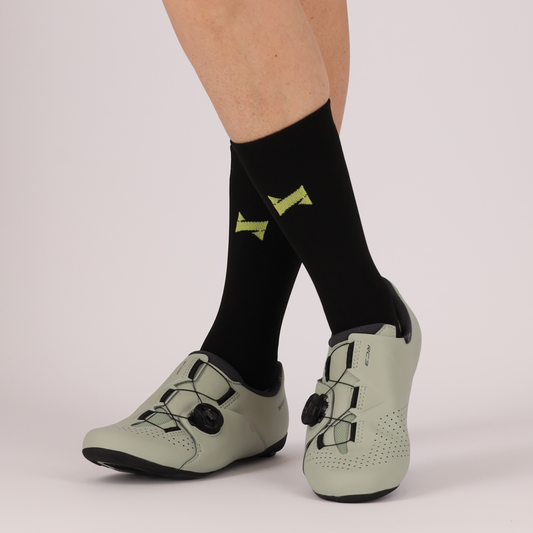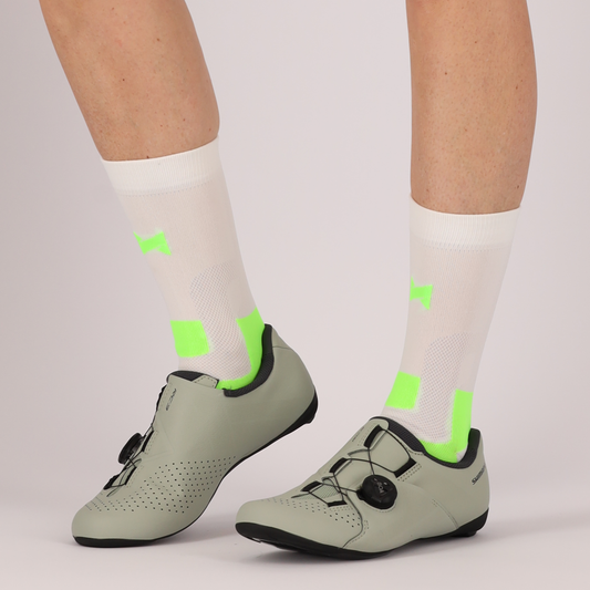 Wielrenners weten: de juiste sokken kunnen je prestatie écht verbeteren. Onze wielrensokken zijn ontwikkeld met oog voor detail en prestaties. Ze sluiten perfect aan rond de voet en enkel, wat wrijving en blaren voorkomt. Het lichte materiaal ventileert uitstekend en voert zweet snel af, zodat je voeten fris blijven, ook tijdens intensieve tochten. Door de waterafstotende eigenschappen kun je vol vertrouwen op pad, ongeacht de omstandigheden. Combineer ze met je wielrenoutfit en ga voor stijl en functionaliteit in één.