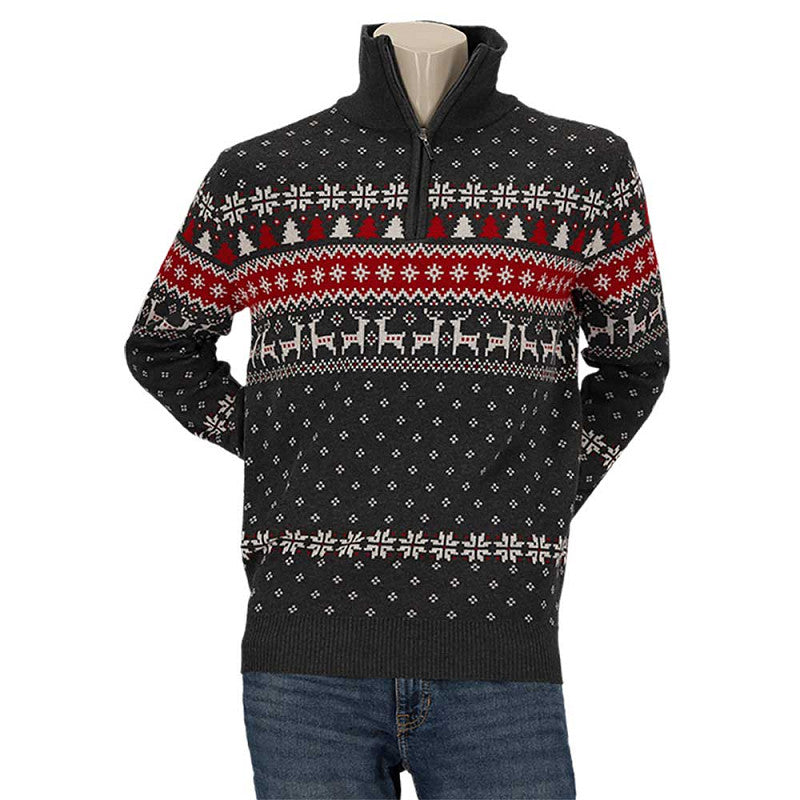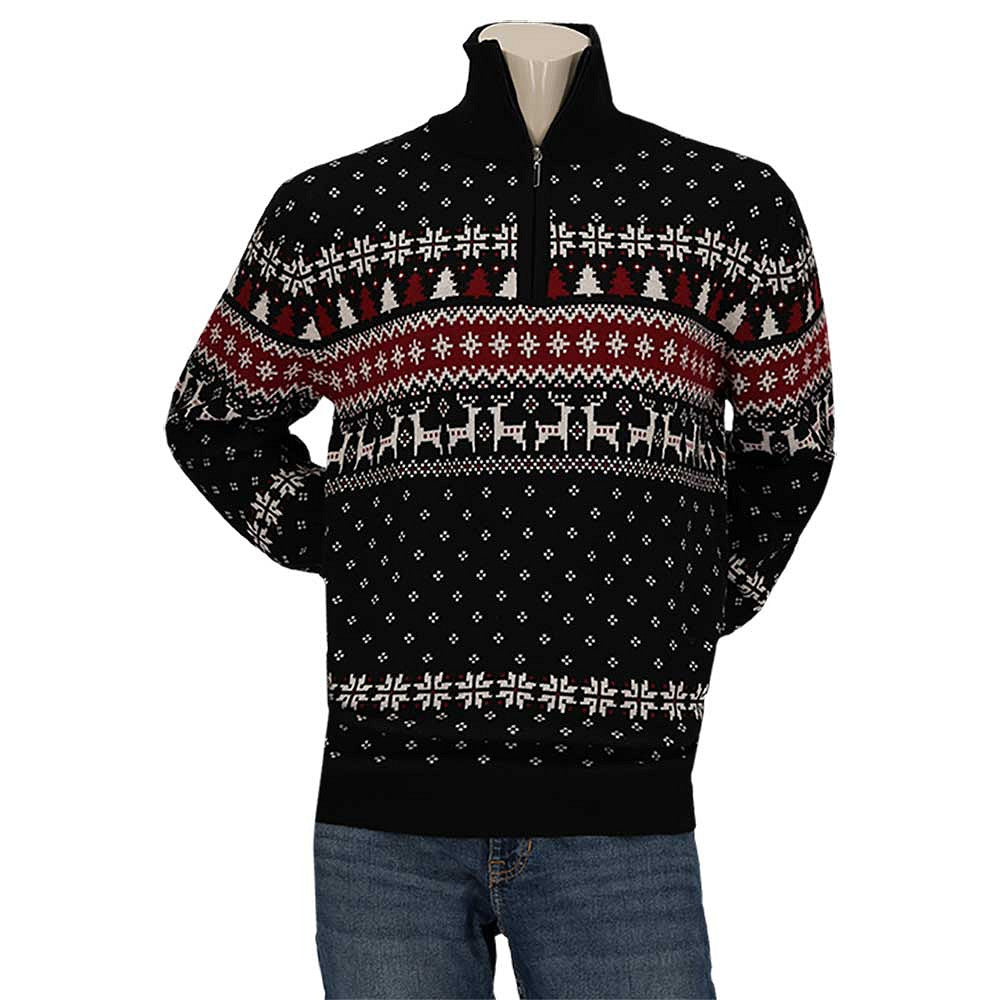 Op zoek naar een kersttrui die zowel feestelijk als comfortabel is? Deze gebreide skipper kersttrui voor heren is dé perfecte keuze voor wie er stijlvol bij wil zitten tijdens het kerstdiner, de borrel of een winterwandeling. Met zijn klassieke kerstdessin, warme katoenmix en praktische schipperskraag met rits, combineert hij gezelligheid met draagcomfort.