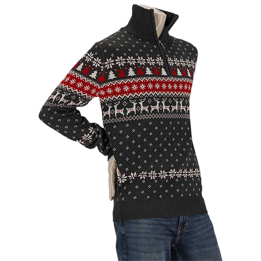 Dankzij de lange mouwen en stevige gebreide stof biedt deze kersttrui precies wat je nodig hebt tijdens koude dagen. De ritssluiting bij de kraag maakt het makkelijk om de trui aan te trekken en zorgt voor wat extra ventilatie als het binnen wat warmer wordt. Ideaal voor zowel binnen als buiten.