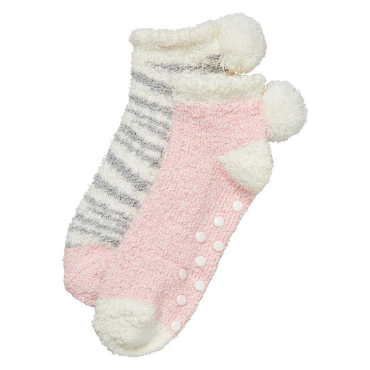 Weiche Bettsocken für Frauen - 2er-Pack - Rosa/Weiß