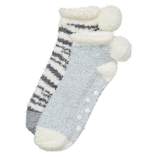 Damen Bettsocken - Weiches Garn - 2er-Pack - Grau