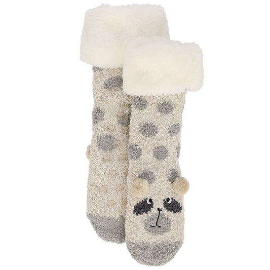 Haussocken für Mädchen - Tiermuster mit Pompons