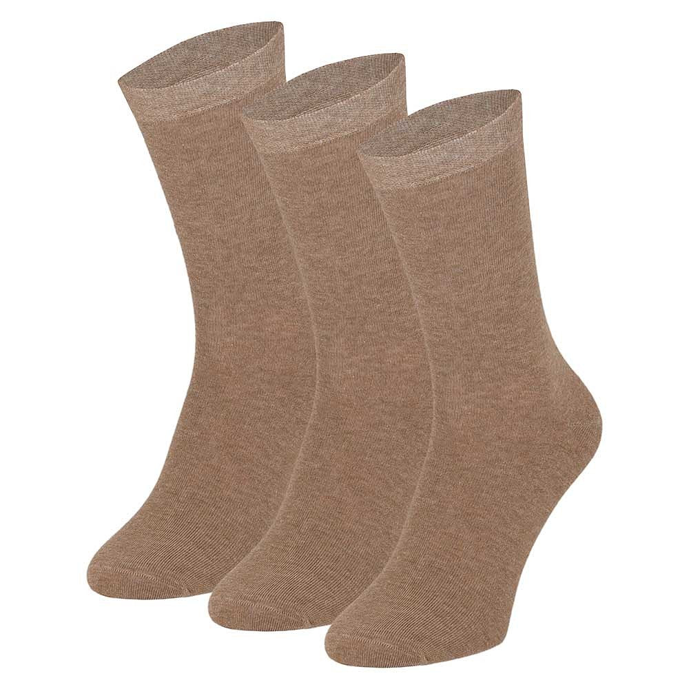 Katoenen heren sokken in de kleur medium beige van Apollo. Dit aantrekkelijk 3-pack katoenen heren sokken is voorzien van een pique cuff tegen knelling, zijn naadloos, slijtvast en scherp geprijsd in onze webshop. Deze basic dagelijkse sokken zijn ademend en hebben een handgekettelde afwerking zonder voelbare naad op de tenen.
