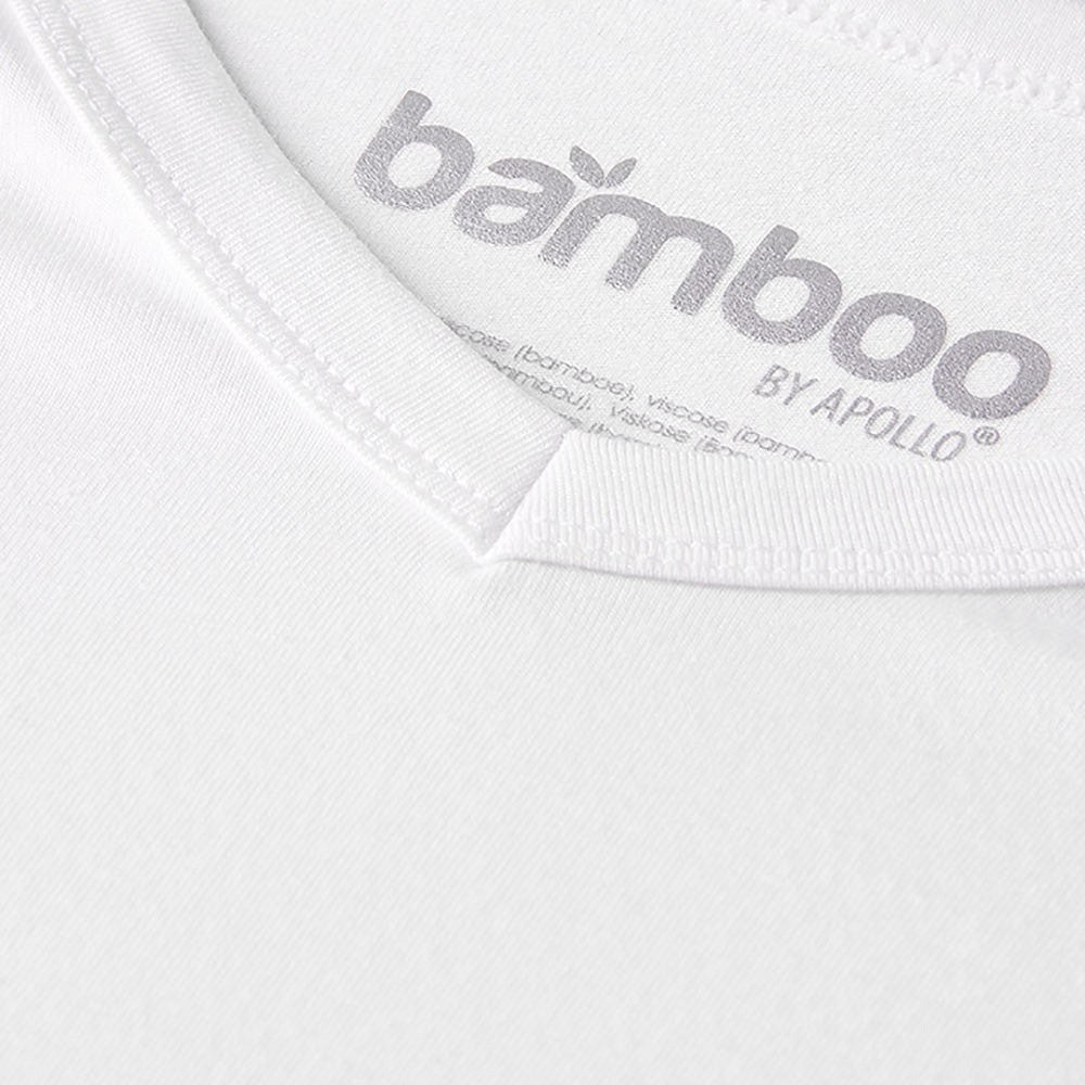 Aantrekkelijk Bamboe Heren T-Shirt voordeelpakket 4-Pack. Deze Bamboe T-Shirts draag je het liefst iedere dag. De optimale pasvorm maakt dit shirt soepel vallend en ideaal als onderkleding. De V-hals is extra laag. Dit Apollo Bamboo t-shirt bestaat voor een overgroot deel uit bamboe en wordt dus gemaakt van de vezels van een bamboeplant. De mix met andere textielsoorten zorgt voor de juiste stevigheid, draagcomfort en uitstraling. Dit populaire bamboetextiel kent een aantal unieke eigenschappen en is minder milieubelastend om te produceren. Bamboe is van nature antibacterieel, hypoallergeen, vochtabsorberend en antistatisch. Gebruikers met een gevoelige huid waarderen het superzachte karakter. Apollo Bamboo producten zijn licht, ademend, soepel en erg fijn om te dragen. Bovendien is de stof temperatuur regulerend. In de zomer verkoelend en lekker warm in de winter