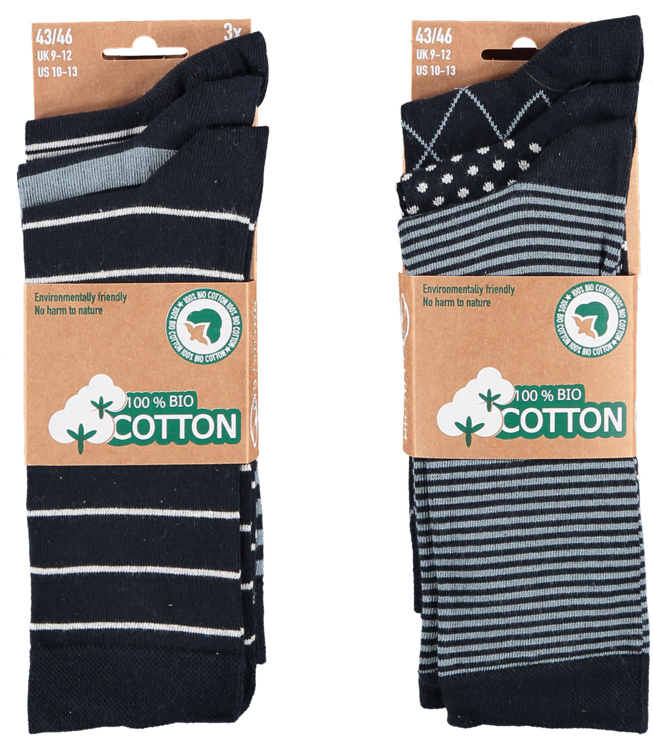 Heren sokken van biologisch katoen in de kleur assorti marine. Deze modieuze Apollo Bio-Cotton herensokken met dessin bieden een hoog draagcomfort voor iedere dag. Luchtig om te dragen en geschikt voor de gevoelige huid. Het biologische katoen geeft een natuurlijke uitstraling. Deze sokken zijn vocht- en warmte modulerend, huidvriendelijk, zacht en sterk. Het biologisch katoen voldoet aan de hoge standaard van het GOTS-keurmerk (Global Organic Textile Standard). Biologisch katoen wordt onder toezicht op milieuvriendelijke wijze geteeld en verwerkt. Hiermee beschermen we niet alleen het milieu, maar ondersteunen we ook de landbouwers met een eerlijke beloning, welzijn en veilige werkomgeving.
