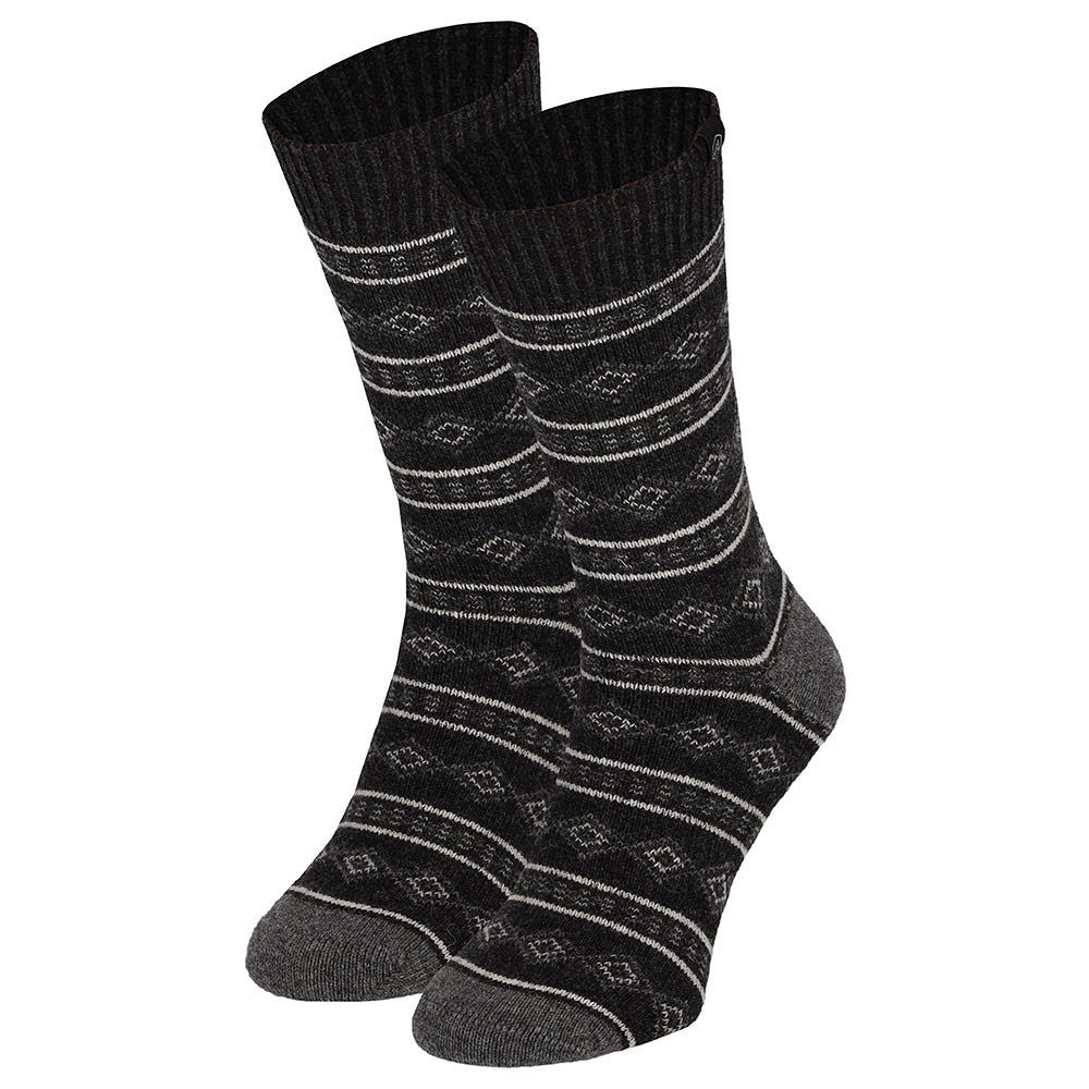 Ervaar het genot van deze heerlijke warme en comfortabele gebreide wollen heren huissokken. Het fijne jaquard patroon geeft een warme en vrolijke uitstraling aan je voeten. De sokken zijn heerlijk warm en ideaal om te dragen tijdens een avondje thuis op de bank of in bed. Apollo homewear. Good to be home.
