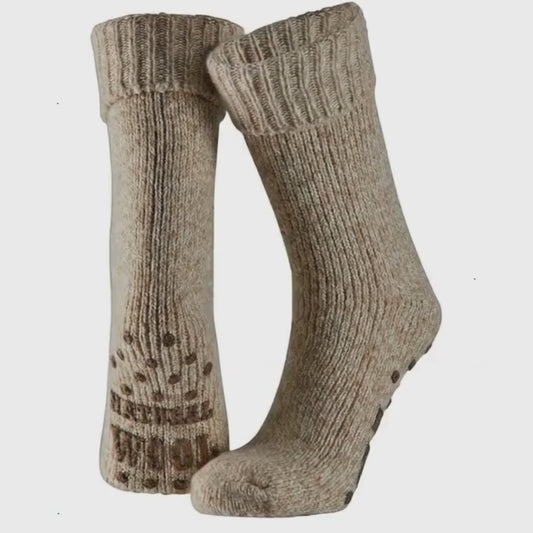 Chaussettes de maison pour dames - Laine - Marron clair - Antidérapantes
