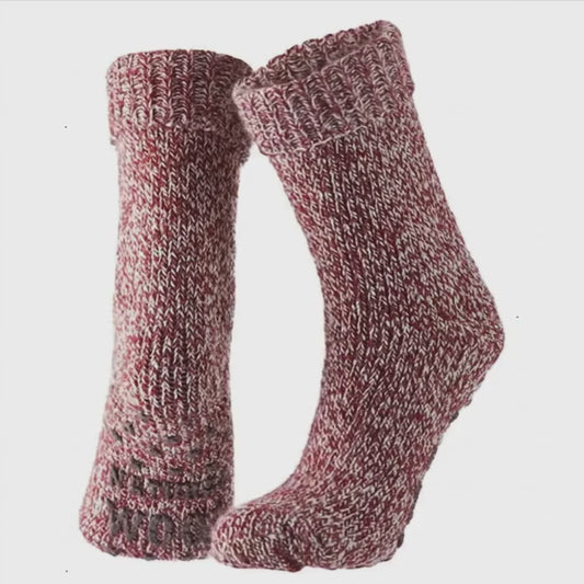 Chaussettes d'intérieur en laine pour dames - Antidérapantes - Fashion Red