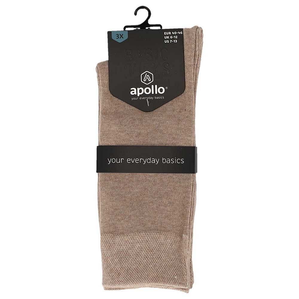 Chaussettes confortables pour hommes en coton beige moyen, fournies dans un joli pack de 3. Ces chaussettes en coton sont sans coutures, possèdent un revers piqué pour éviter les pincements et sont toujours proposées à des prix compétitifs dans notre boutique en ligne. Vous recherchez une chaussette de qualité pour un usage quotidien ? Les chaussettes en coton d'Apollo sont robustes, confortables et durables.