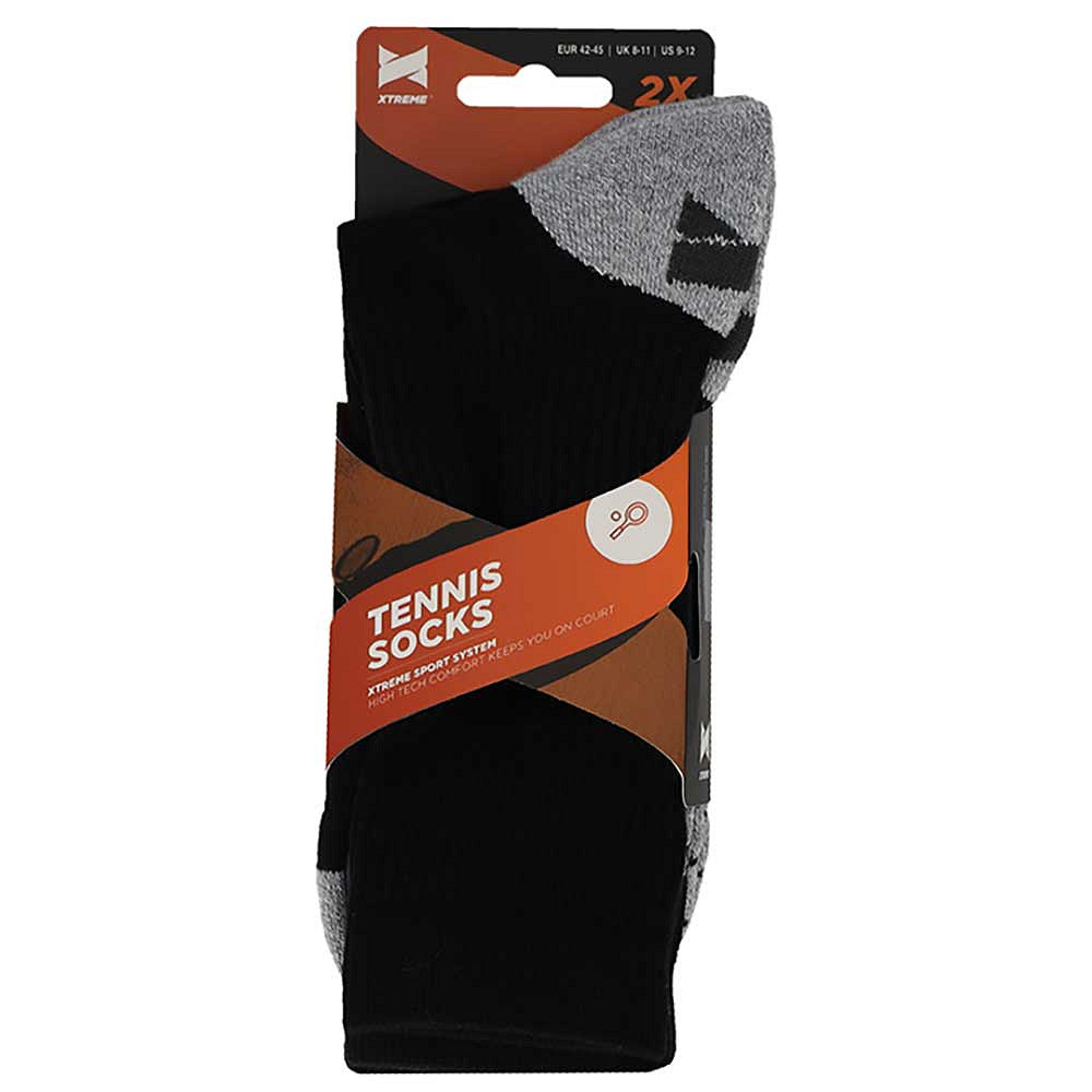 Dépassez vos limites avec ces chaussettes de tennis/padel de Xtreme chaussetteswear. Lors de vos entraînements ou compétitions, ces chaussettes offrent le meilleur maintien possible grâce à une répartition optimale de la pression. L'effet Coolmax de ventilation rend ces chaussettes à séchage rapide et respirantes afin que vos pieds restent au sec et au frais. Ils conviennent donc à une utilisation dans tous types de conditions météorologiques. La semelle intérieure de forme anatomique en tissu éponge et le talon surélevé protègent les pieds contre les ampoules, réduisent les points de pression et offrent un amorti supplémentaire. Le col côtelé non contraignant, les détails côtelés de soutien sur la tige et le cou-de-pied ainsi que la coupe sans couture assurent un confort de port optimal.