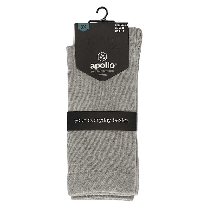 Comfortabele dagelijkse katoenen sokken van Apollo in de kleur licht grijs. Deze katoenen sokken zijn naadloos, voorzien van pique cuff tegen knelling en worden geleverd in een aantrekkelijk 3-pack. Bestel eenvoudig jouw basis katoenen sokken voor dagelijks gebruik in onze webshop. Betaalbaar en van hoge kwaliteit!