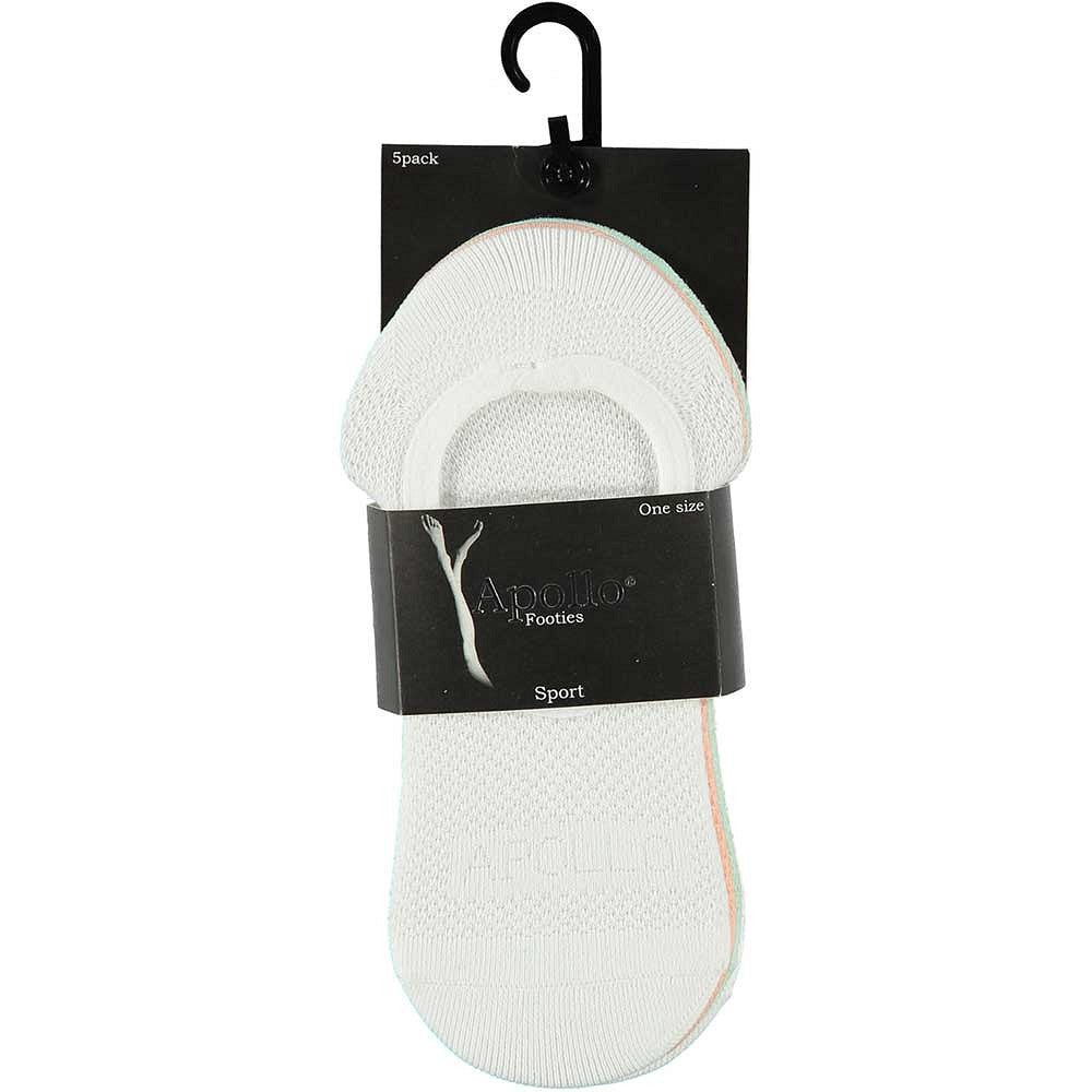 Start jouw workout in stijl met deze sport footies voor dames. One size, naadloos en met een perfecte pasvorm. Ze blijven uitstekend om jouw voet zitten en schieten niet weg. Het super elastische en microfibre materiaal met mash zorgt voor een ademende werking. Ze sluiten hoog aan op de wreef waardoor ze comfortabel te dragen zijn in sportschoenen. Geleverd als aantrekkelijk 10-pack. Apollo, your everyday basics.
